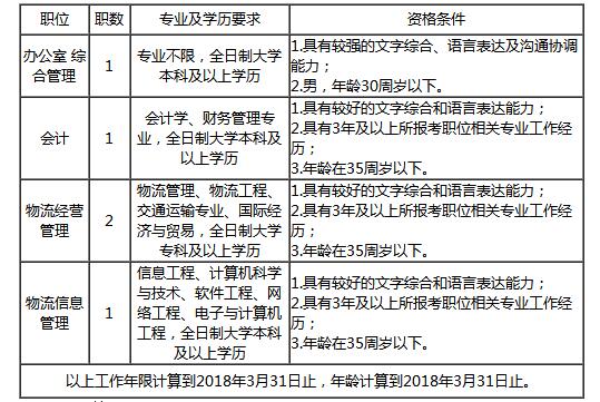 ? ? 金華市浙中公鐵聯(lián)運港有限公司面向社會(huì )公開(kāi)招聘工作人員5人,其中辦公室綜合管理1名,會(huì )計1名,物流經(jīng)營(yíng)管理2名,物流信息管理1名。